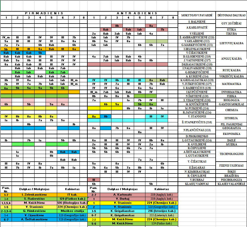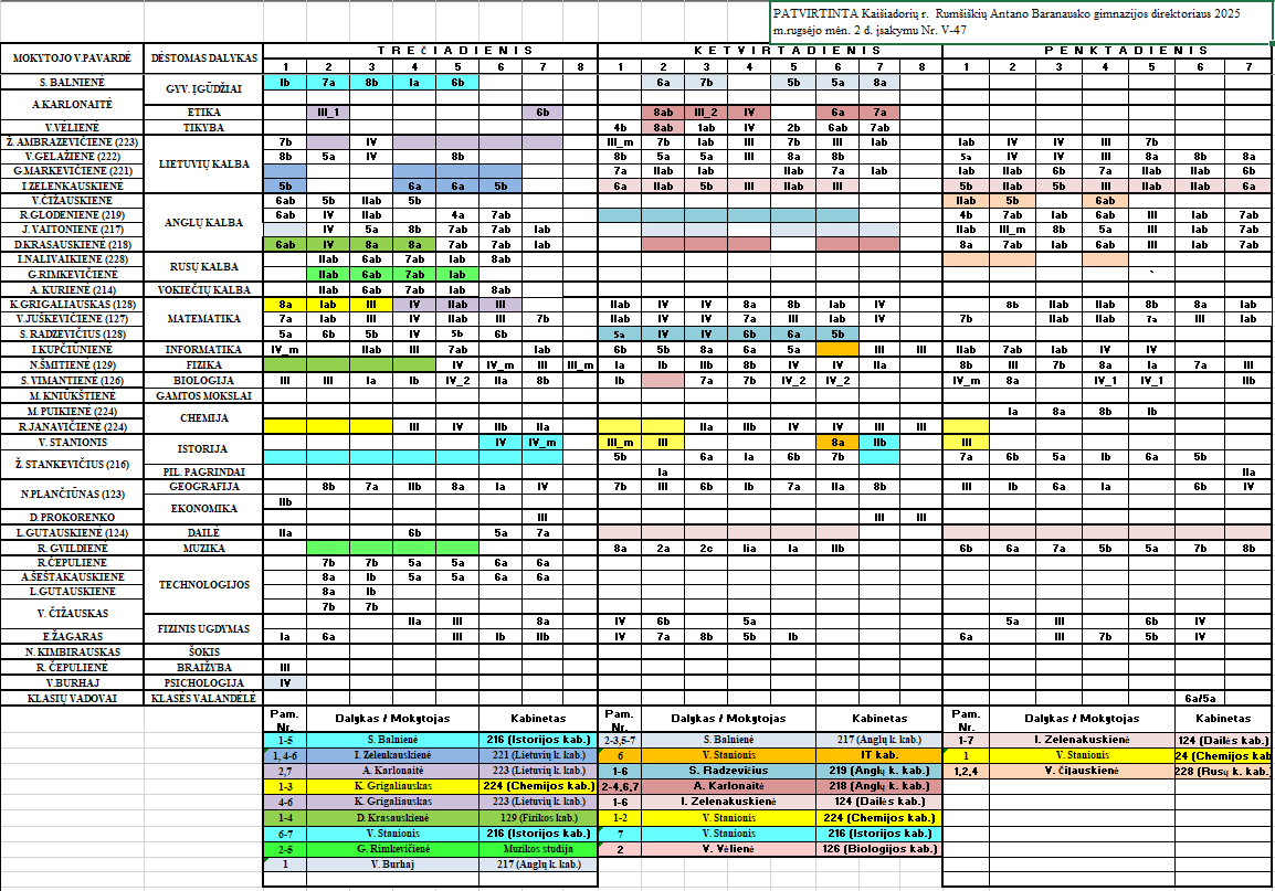 Pamokų tvarkaraštis 5-8, I–IV kl. 2025-2026 m.m.